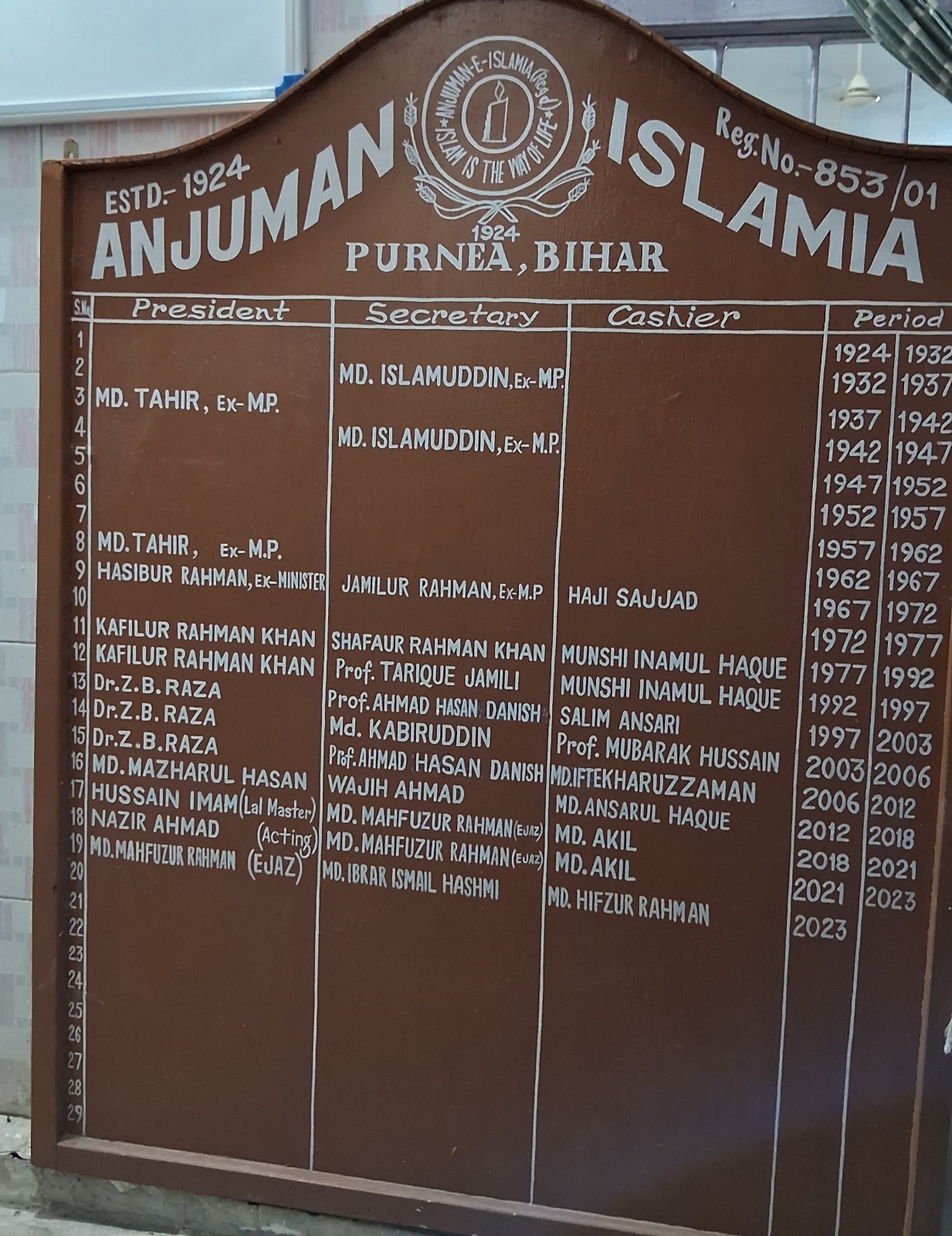 انجمن اسلامیہ پورنیہ کے زیر انتظام ادارے مندرجہ ذیل ہیں: